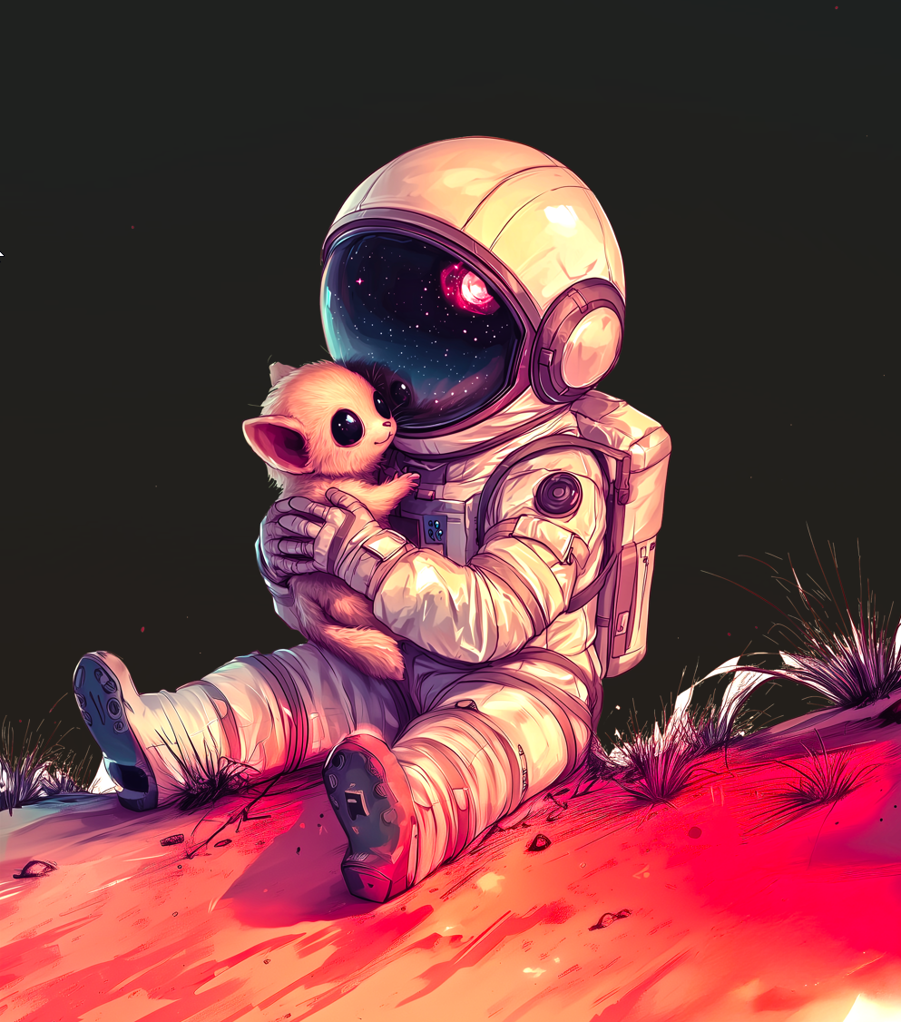 In a distant corner of the galaxy, a lone astronaut finds a small, furry alien with glowing eyes and an endless sense of wonder. Cosmic Companion captures the warmth and bond forged across the stars—a gentle reminder that even in the vastness of space, companionship knows no bounds. Whether you're exploring sci-fi merchandise or looking for a shirt that celebrates connection and adventure, this design is a perfect fit.