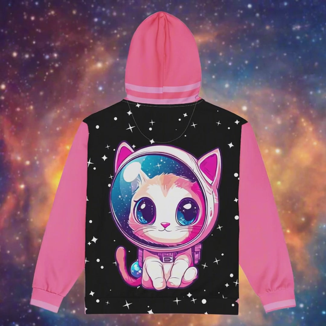 This hoodie is part of the Kawaii Kingdom: Next Gen collection—a playful continuation of the original Kawaii Kingdom Collection, offering cozy style with sci-fi merchandise flair for cat lovers, space dreamers, and stargazing souls alike.