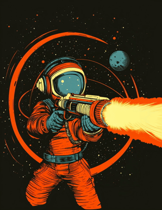 In the far reaches of the galaxy, the Blaster Elite emerges as humanity's last line of defense. Armed with a plasma rifle radiating fiery resolve, this lone warrior stands against cosmic chaos, embodying the bold spirit of classic sci-fi.