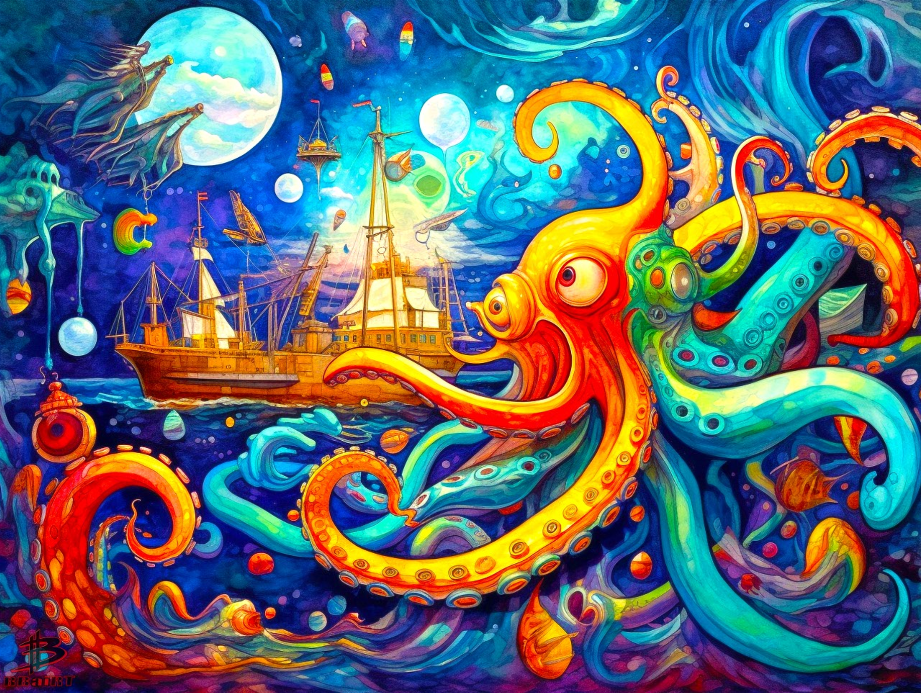 Across the cosmic seas, Celestia, the nurturing Kraken, stretches her vibrant, swirling arms in a graceful dance. As ships sail through her orbiting waters, she gently cradles them like a child with beloved toys—guarding, comforting, and inspiring awe. Her tender guardianship breathes warmth into the vast unknown, reminding travelers that even amidst the stars, compassion anchors us. Part of the Cosmic Tentacles Collection, exclusively at BBairt, this piece of fantasy merchandise brings wonder and whimsy to your everyday adventures.