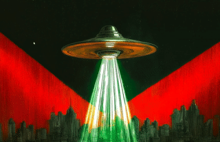 Step into the City of Beams, a futuristic metropolis illuminated by a dazzling alien arrival. The UFO's emerald glow pierces the night sky, casting intricate patterns across the skyline, and igniting imaginations. Is it a moment of peaceful discovery, or the prelude to an extraordinary encounter? Bring the suspense of sci-fi storytelling to your workspace with this striking design from the Retro Nova Chronicles Collection—your portal to bold, original sci-fi merchandise.
