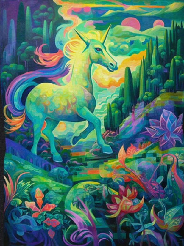 From the heart of the Enchanting Unicorns Collection comes Enigma of the Valley, a design that evokes awe and wonder with every glance. In a serene, emerald valley, a mysterious unicorn with a coat of radiant hues emerges from the morning mist. Known only in legend, this silent guardian watches over the glade’s timeless beauty, appearing only to those pure of heart or lost in thought. It’s said that encountering the Enigma brings clarity, peace, and a brush with forgotten magic.