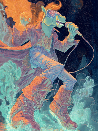 Flarehoof the Micbreaker doesn’t just perform—he scorches stages and shatters sound barriers with sheer vocal force. Born from blazing ballads and mythical fire, this flame-maned stallion commands every crowd with earth-shaking riffs and a stomp that reverberates through magical realms. With a voice said to awaken ancient spirits (and short-circuit amps), Flarehoof leads the charge in a harmony-fueled rebellion of rhythm and roar.