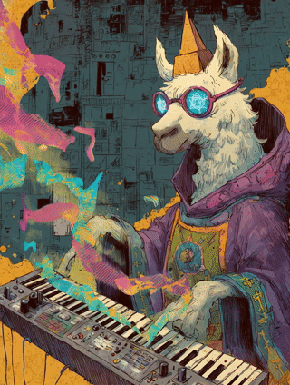 In a forgotten chamber pulsing with ethereal light, a llama cloaked in wizard garb conjures streams of enchanted melody from a glowing synthesizer. Known throughout the realms as the Synthbound Sage, this mystical maestro channels sound into spellwork, crafting tunes that ripple through dimensions. With glowing spectacles and a cosmic grin, this funky sage makes magic out of music—each note a spark, each chord a wave of energy dancing across space and imagination.